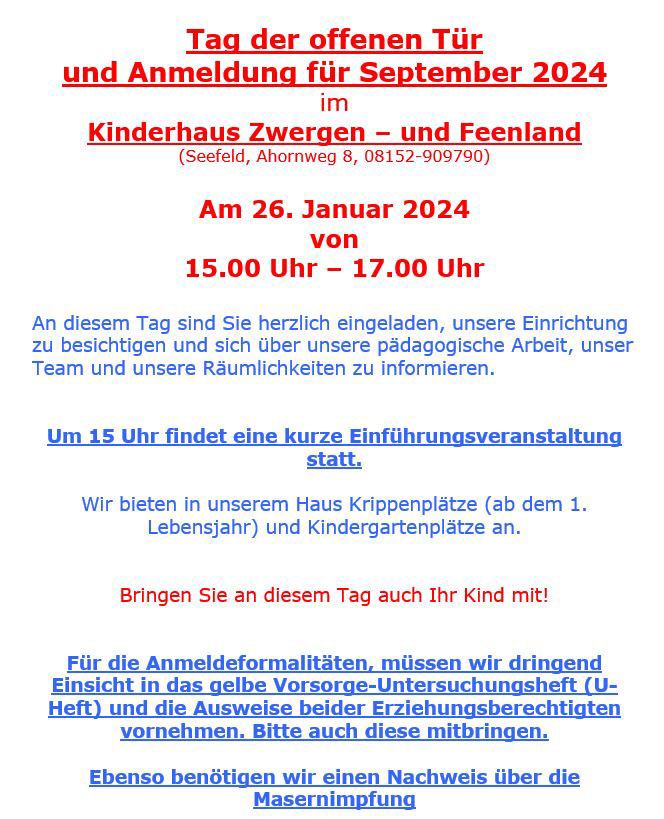 Herzlich willkommen auf der Internetseite des Zwergen und Feenland - Kinderhauses in Seefeld!