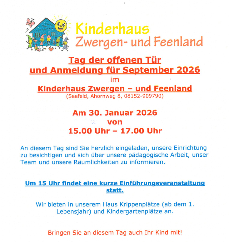 Herzlich willkommen auf der Internetseite des Zwergen und Feenland - Kinderhauses in Seefeld!